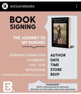 If you’re in the Rosebank area on Sunday and want to find more out about a truly inspirational story then pop into Exclusive Books between 11am and 12h30pm to meet Horentia and learn more about her story.